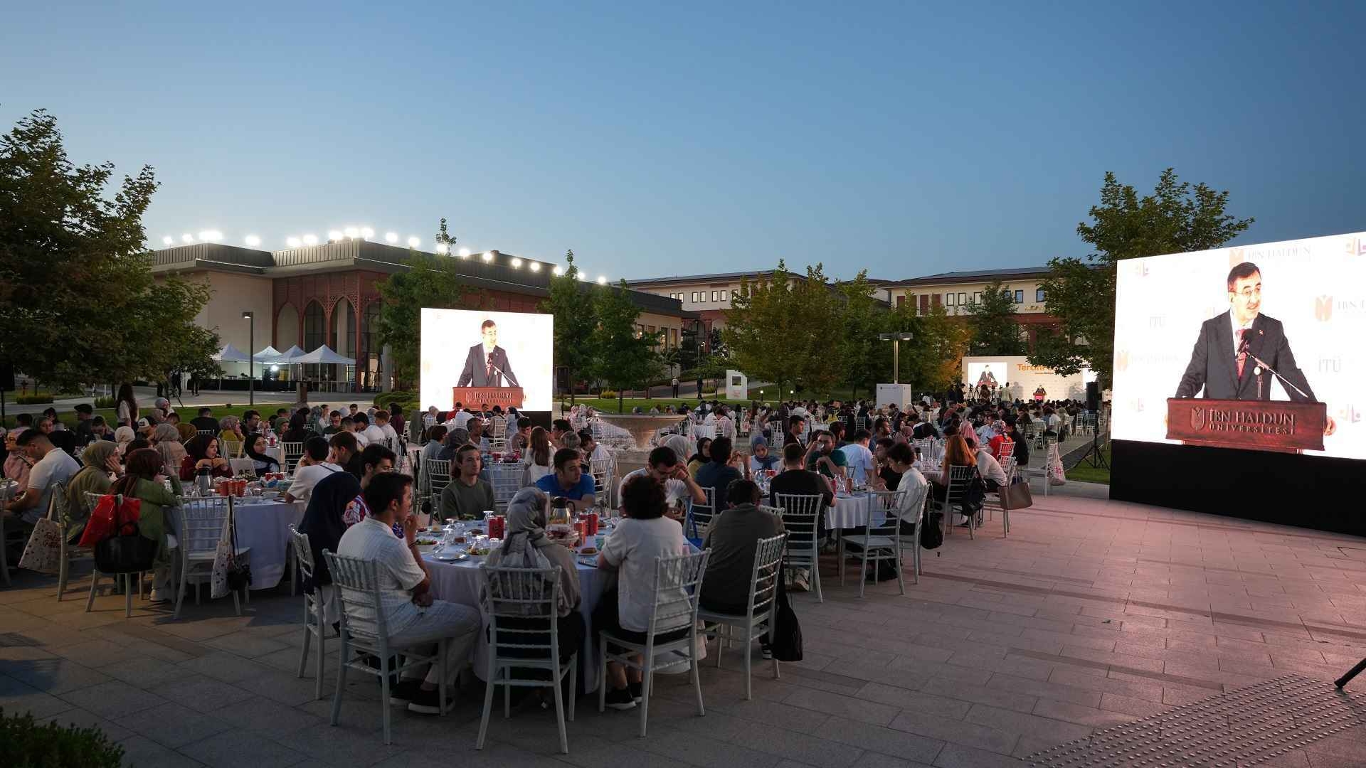 Yemekte bir konuşma yapan Cevdet Yılmaz, İbn Haldun Üniversitesi ile İstanbul Teknik Üniversitesi iş birliğinde düzenlenen programın anlamlı bir öğrenme ve keşif süreci olduğunu vurguladı. Tercih döneminde rehberlik faaliyetlerinin geçmişe kıyasla çok daha hayati hâle geldiğini vurgulayan Yılmaz, “Etkili ve isabetli bir tercih, geleceğinizi şekillendirecek en önemli adımlardan biridir” dedi. "Yarınki Türkiye" teması çerçevesinde nitelikli ve donanımlı birey yetiştirmenin toplumsal kalkınmanın anahtarı olduğunu belirtti. Yılmaz, özellikle üniversite tercihinde üç temel unsurun önemine dikkat çekti: Şehir, üniversite ve bölüm. Öğrenim görülecek şehir ortamının ve sosyal imkânların eğitim kalitesiyle doğrudan ilişkili olduğunu söyleyen Yılmaz, üniversite tercihlerinde de köklü kurumların yanında, güçlü vizyona sahip yeni vakıf üniversitelerinin de değerlendirilmesi gerektiğini ifade etti. Bu noktada İbn Haldun Üniversitesi’nin mimarisi, kampüs altyapısı, yeşil alanları, çok dilli eğitimi, uluslararası yapısı ve akademik kadrosuyla öne çıktığını belirtti. Sosyal bilimlerin günümüzde teknik bilimler kadar hayati olduğunu dile getiren Yılmaz, “Geleceğin dünyasında güçlü sosyal bilimcilere ihtiyaç duyacağız. Karşı karşıya olduğumuz karmaşık problemler, ancak disiplinler arası bir yaklaşımla çözülebilir” dedi. Sosyal ve teknik bilimlerin birbirini tamamlayıcı yönlerini, ahlak ve etik değerlerle birleştiren bir eğitim anlayışının gerekliliğine vurgu yaptı. Öğrencilere seslenerek sorumluluk almanın önemini hatırlatan Yılmaz, “İrade sahibi olmak, tercih yapabilmeyi ve o tercihin sorumluluğunu üstlenmeyi gerektirir. Bugün seçtiğiniz bölümde en iyisi olmak için çaba göstermelisiniz. Rehavet değil, disiplinli ve vizyoner bir üniversite hayatı sizi bekliyor” ifadelerini kullandı.